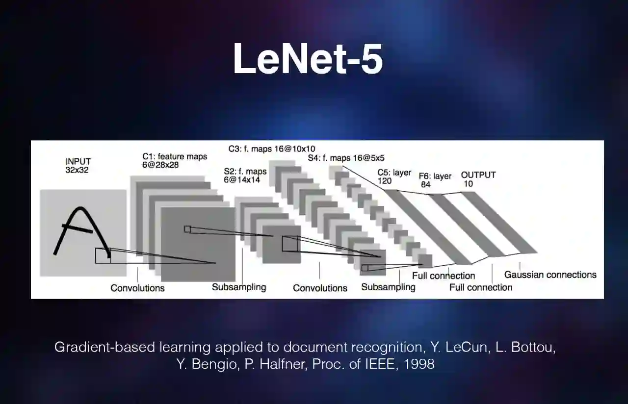 这里有几个里程碑式的工作,包括 80 年代 Yann LeCun 等人做的 LeNet-5,2012 年 AlexNet 能突破性地把图像识别的错误率降了 10%。再之后谷歌 GoogLeNet 能够把网络结构的复杂程度突破大家的想象。在那之前,大家还是按照 LeCun 的方式去做。微软的 Residual Net 也是一个很好的工作,可以让网络结构变得更深,效果也更好。