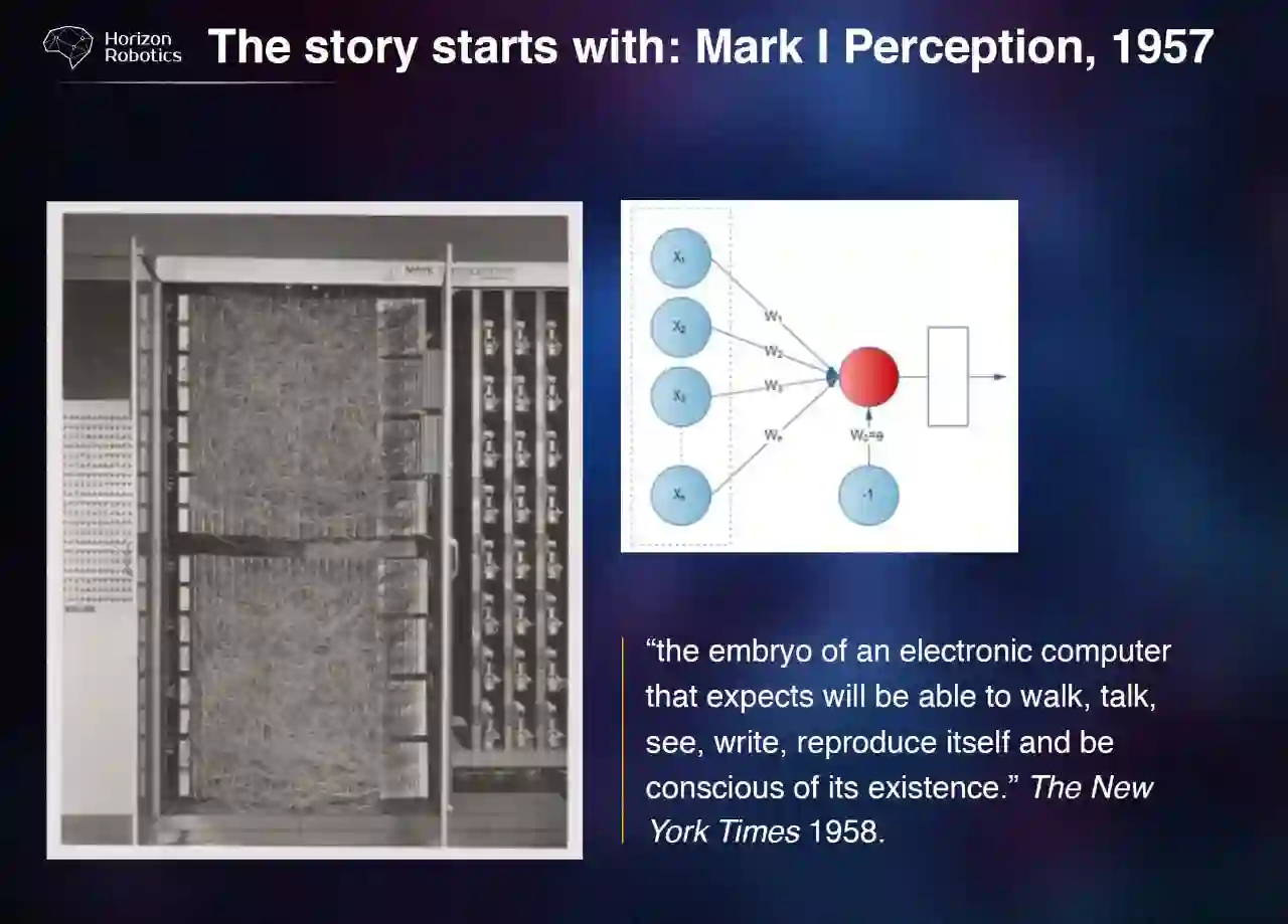 这里还是要简单回顾一下历史,最早起源于 1957 年的 Mark I perception。