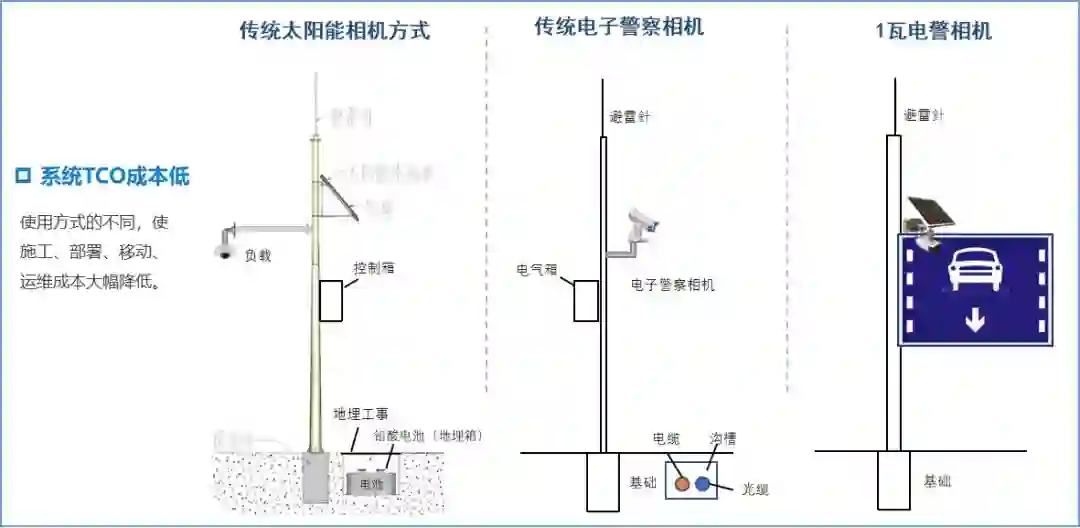 乡村公路“1瓦电警”:机动车闯红灯、非法掉头、车辆号牌识别、大货车禁行等。