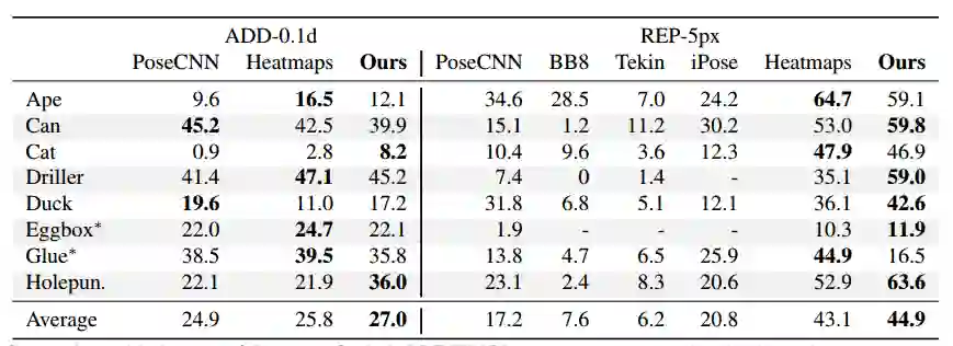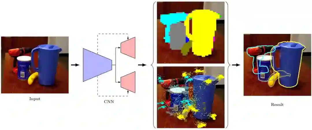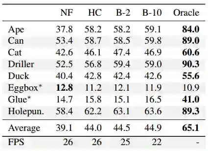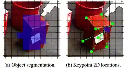 估计物体的6D姿态的最新趋势是训练深度网络以直接从图像中恢复位姿或预测3D关键点的2D位置,从中可以使用PnP算法获得位姿。在这两种情况下,对象都被视为全局实体,并且计算单个姿态估计。因此,它们的结果对于较大的遮挡是非常敏感的。