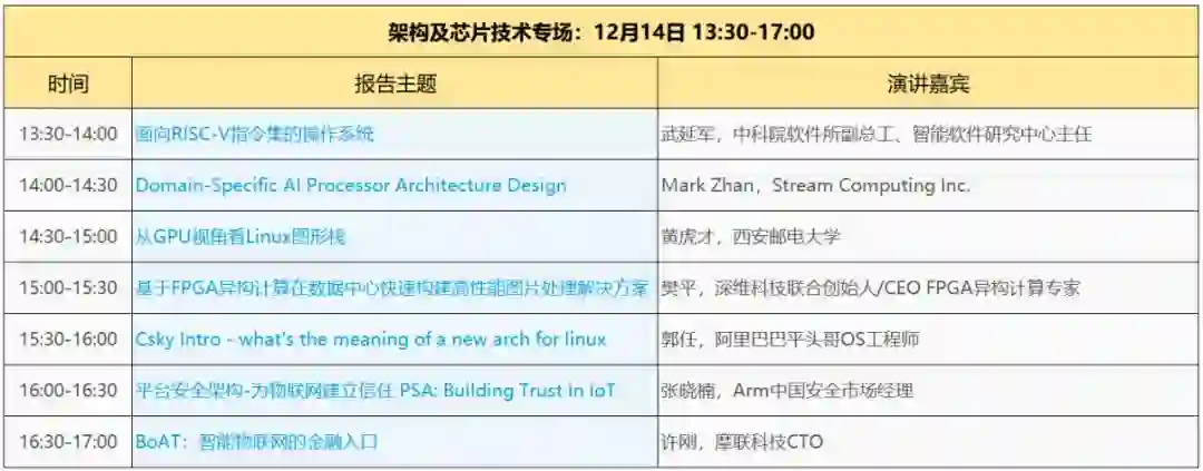 会议当天上午,将由操作系统及相关领域的知名专家学者做大会的年度技术演讲;下午将围绕“内核技术”、“全栈及应用生态”、“编程语言及编译器”、“架构及芯片技术”、“虚拟化技术”等专题举行深入研讨会。大会精彩日程现已出炉,你准备好开启烧脑模式了吗?