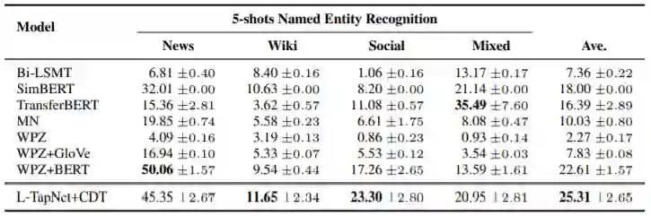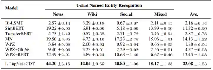 最终,我们提出了一种基于CRF的少样本序列标记框架,以整合上面提到跨领域标签依赖建模和L-TapNet给出的标签概率(见Fig 5)。在语义槽标记(Slot Tagging)和命名实体识别(NER)数据集上的实验表明,我们的模型在1-shot设置中分别显着优于最强的少样本学习baseline 7.96和11.70 F1-score。