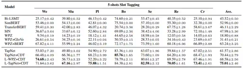 目前针对少样本学习的工作主要研究少样本的图像分类问题,对于自然语言处理任务的探索也主要着眼于短文本分类任务。我们的工作以语义槽标记(Slot Tagging)入手,探索了序列标注(Sequence Labeling)任务中的少样本学习方法。