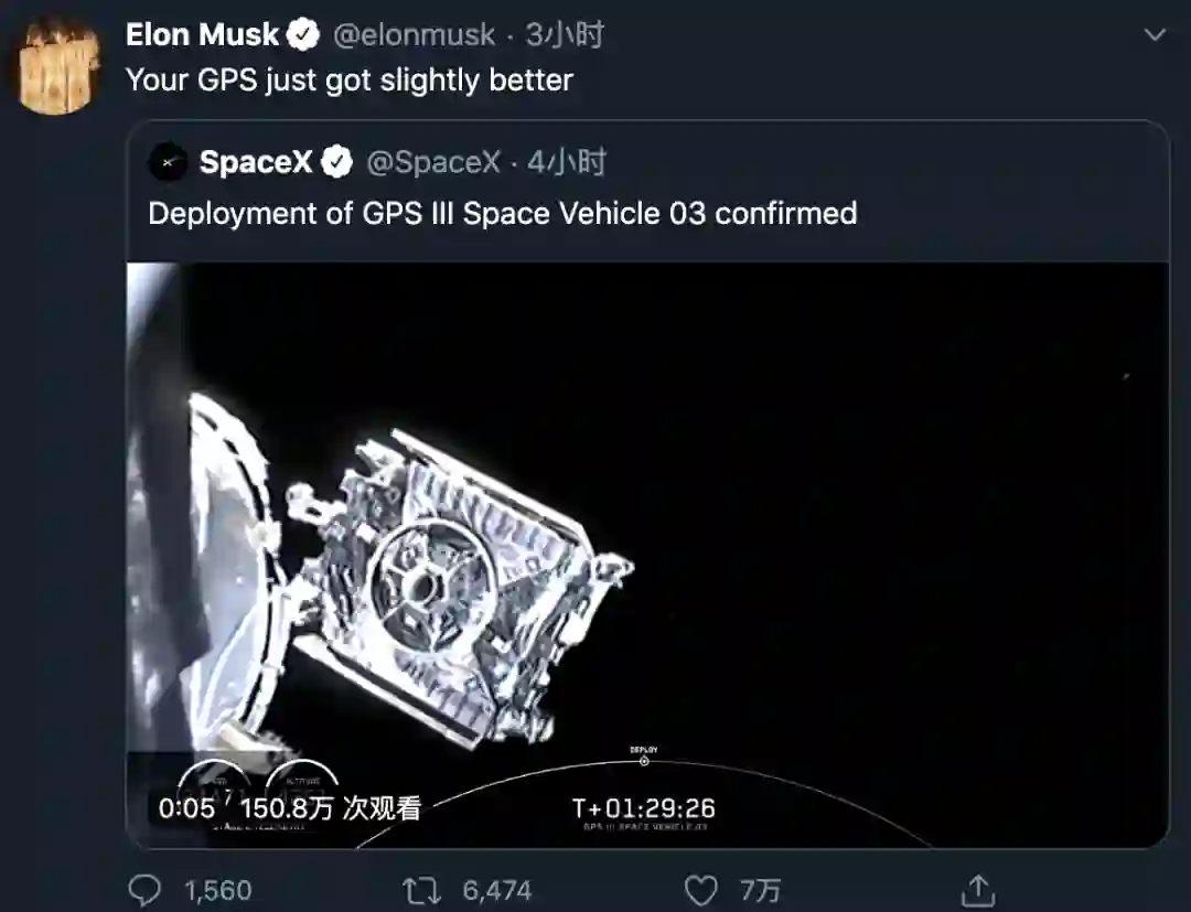 搭载GPS III卫星的航天器成功部署