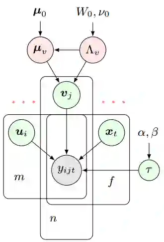 BATF(贝叶斯增广张量分解)模型作为贝叶斯网络和定向因子图。
