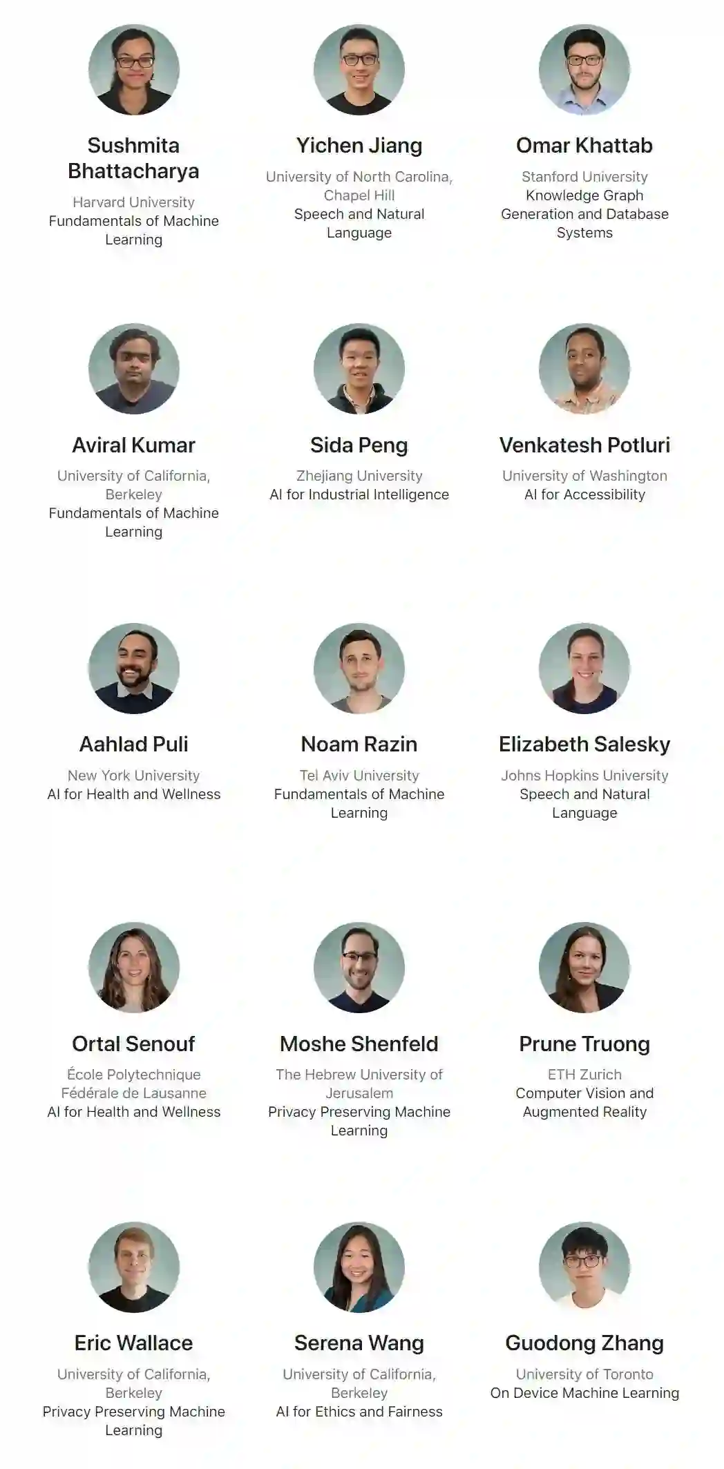 四位华人学生为 Yicheng Jiang(姜翌辰)、Sida Peng(彭思达)、Serena Wang 以及 Guodong Zhang(张国栋),姜翌辰、张国栋以及 Serena Wang 三人分别就读于北卡罗来纳大学教堂山分校、多伦多大学以及加利福尼亚大学伯克利分校,彭思达就读的则是国内的浙江大学。