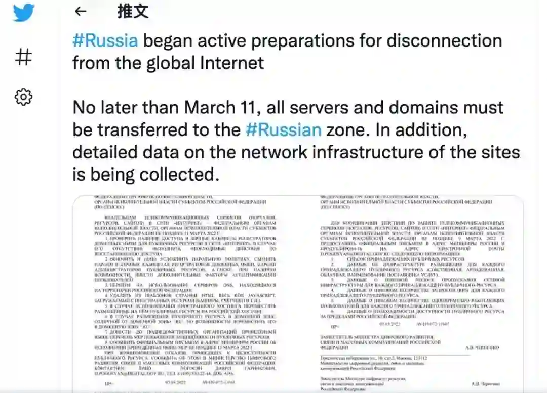近日,一份流传的俄罗斯政府文件也显示,俄罗斯正在准备脱离全球互联网。