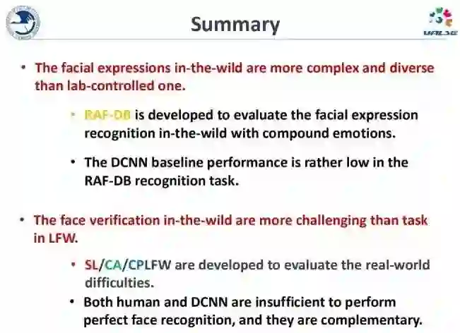 总结今天的报告,我们发现“看脸”这个学问有很多值得研究的问题。例如,人脸情绪比我们过去想象的基本表情要复杂和分散,我们构造了一个RAF-DB来描述复合表情,大家可以试一试。