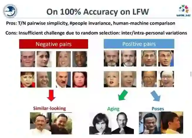 再如,人脸验证有外貌相似、跨年龄、跨姿态等各种难题,我们构建了相应的数据集,等着大家去提高和解决。希望以后有更多的同学进入这个领域。