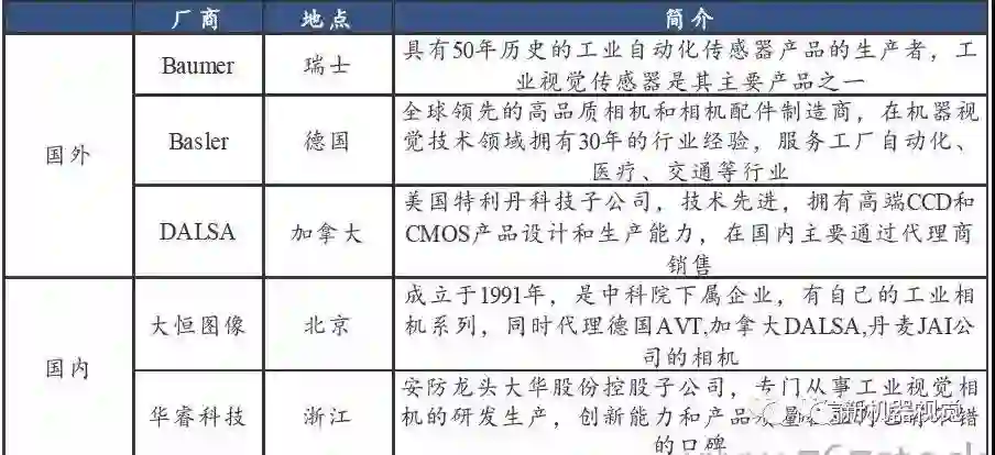 ▲国内外工业相机参与企业