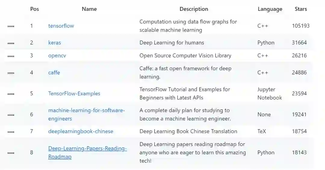 汇集了Top-200个最受欢迎的深度学习Github repo,按照star排序。
