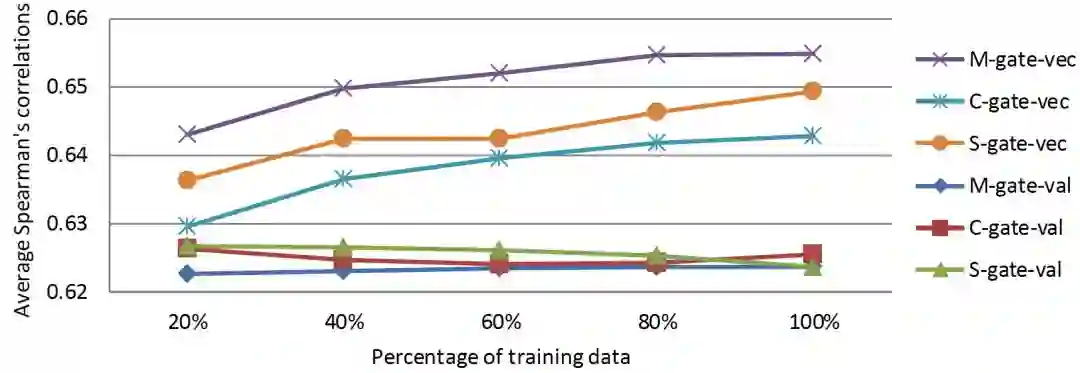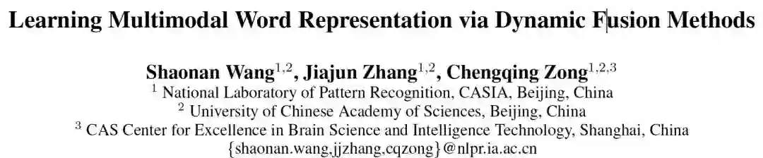 本文提出了三种简单而有效的学习多模态词表示的融合方法(M-gate, C-gate, S-gate)。 实验评估表明,我们提出的模型在所有六个测试中的准确度都有显着提高。 定性分析进一步证明,所提出的方法可以根据不同类型的单词动态地融合来自不同模态的表示信息。