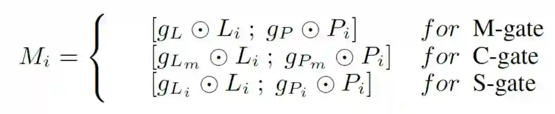 三种Gate 分别对应三种融合方式.每一种融合方式都会计算出权重, 其中文本信息的权重为, 感知信息的权重为