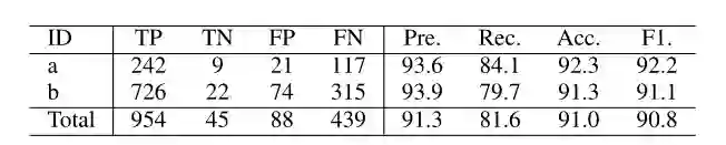 随机森林分类器的在测试集合上的效果如下表,总的来说,我们获得91.3%的精度 并且可以滤除大量的假阳性候选者,保证了回环候选者的质量而保证后端优化获得更好的结果。