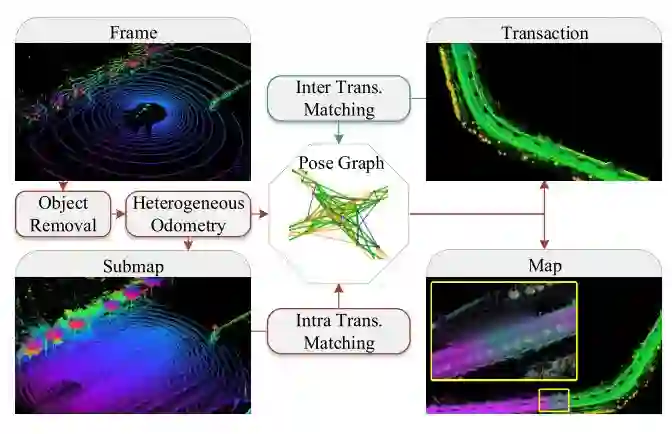 1.本文提出了一个用于获取3D高精度地图的位姿图框架。本文设计了一个精确的位姿图结构来鲁棒地优化多个事务,并且合并了一个可靠的分类器来滤除大量的扫描匹配因子。
