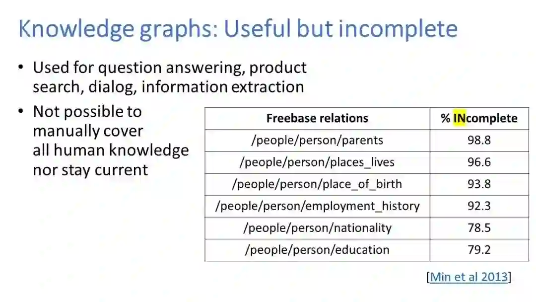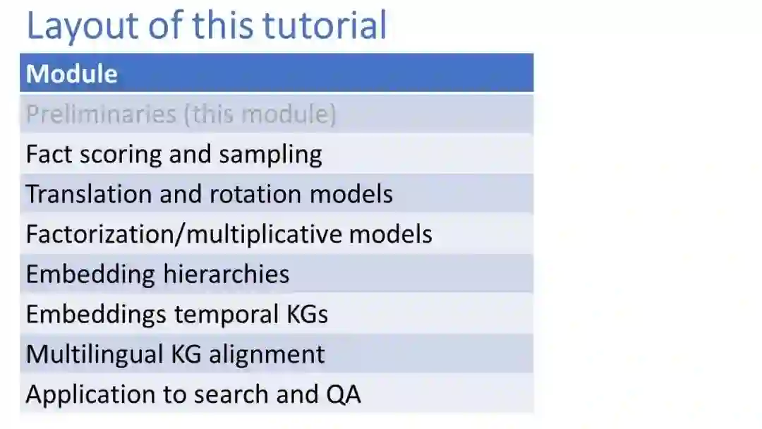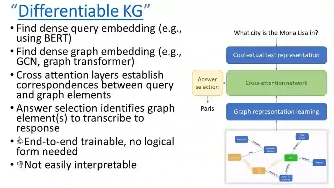 一个知识图谱(KG)有节点和边表示实体和关系。知识图谱是搜索和问题回答(QA)的核心,然而关于知识图谱的深度/神经表征以及深度QA的研究,已经在很大程度上转移到AI、ML和NLP社区。本教程的目标是为IR研究人员提供关于AI、ML和NLP社区的神经KG表示和推理的最佳实践的全面更新,然后探索IR社区的KG表示研究如何更好地受搜索、通道检索和QA需求的驱动。在本教程中,我们将研究最广泛使用的公共知识图谱,它们之间关系、类型和实体的重要属性,知识图谱元素的最佳实践深度表示,以及它们如何支持或不支持这些属性,知识图谱完成和推理的损失公式和学习方法,时间知识图谱中的时间表示,跨多个知识图谱(可能是不同语言)的一致性,以及深度知识图谱在QA应用中的使用和好处。