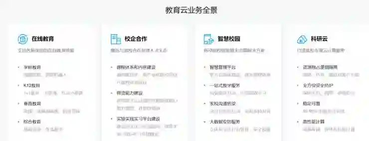 在腾讯云主页的“解决方案”菜单栏中,“教育解决方案”被单辟出一个类别,与“行业解决方案”并列,可见其对教育业务的重视。