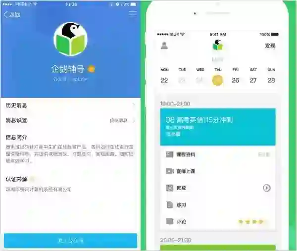 8)企鹅辅导:是一款由腾讯推出的针对中小学生学习的辅导应用,学生可以在应用内参与名师的在线直播课程,与老师实时交流答疑,同时会有资料、习题配套内容帮助学生掌握相关知识。