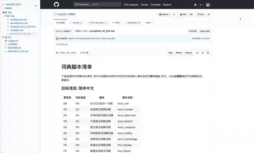 更加强大的是,在线词典助手还支持加载脚本,从而提升查词准确度,你可以在其 GitHub 主页 上找到全部支持清单。如果你也是程序员,可以参照 该文档规范 开发属于你的自定义脚本,让你的扩展更懂你。
