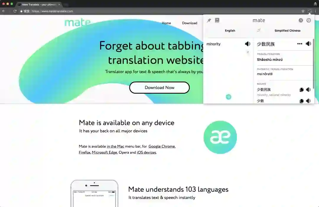 Mate Translate 横跨 macOS、iOS、Android、Chrome、Firefox 等大部分主流平台,甚至提供 Telegram Bot 服务,你可以在 这里 找到全部下载链接。