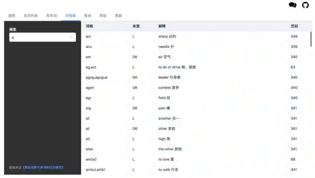 在单词小卡片的选项中,你还可以进行单词测验、查看词根表,或将所有数据导出为 CSV 或 JSON 文件,开发者跑路也不怕了🌚。