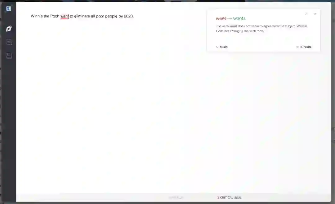 只学不练,你的外语水平也很难得到提升。因此,当积累了一定词汇量后,就到了动笔的时候了。如果你正在尝试书写一封英文邮件,可以试用一下 Grammarly 这款扩展,帮助你纠正错误语法。