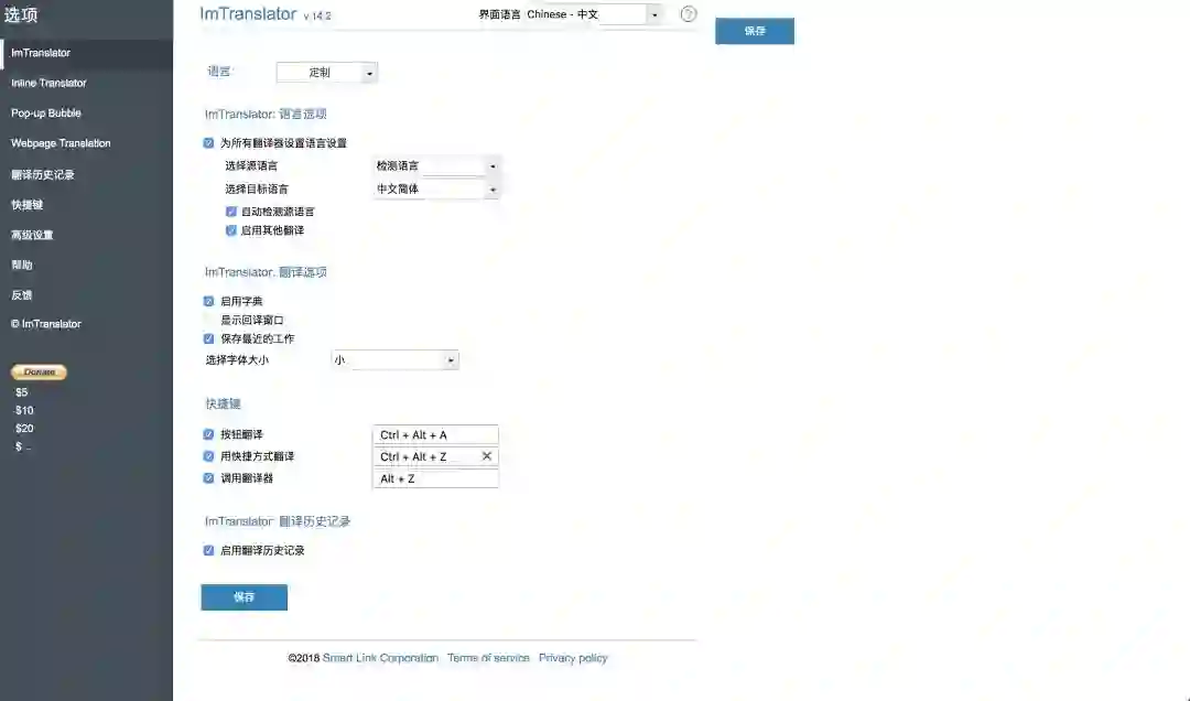在 ImTranslator 的偏好设置中,你还可以指定默认语言,依个人喜好配置快捷键等,自定义程度极高。