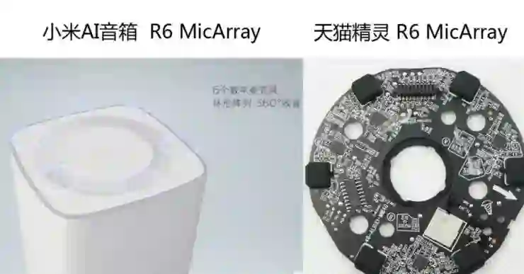 采用的是环形6麦方案,环形6麦的优点就是给产品ID设计更大的自由性,同时也兼顾了成本和远场语音交互性能。国内小米AI音箱采用声智科技的前端方案,其中的阵型就是环形6麦,同时为继续降低成本,麦克风也全部采用数字麦克风,这样就省掉了模拟麦克风必须搭配的AD芯片。国内采用这个阵型的还有天猫精灵、小雅音箱,然而,不同于小米AI音箱,天猫精灵为照顾算法因素,依然采用了模拟麦克风+TI ADC的方案。