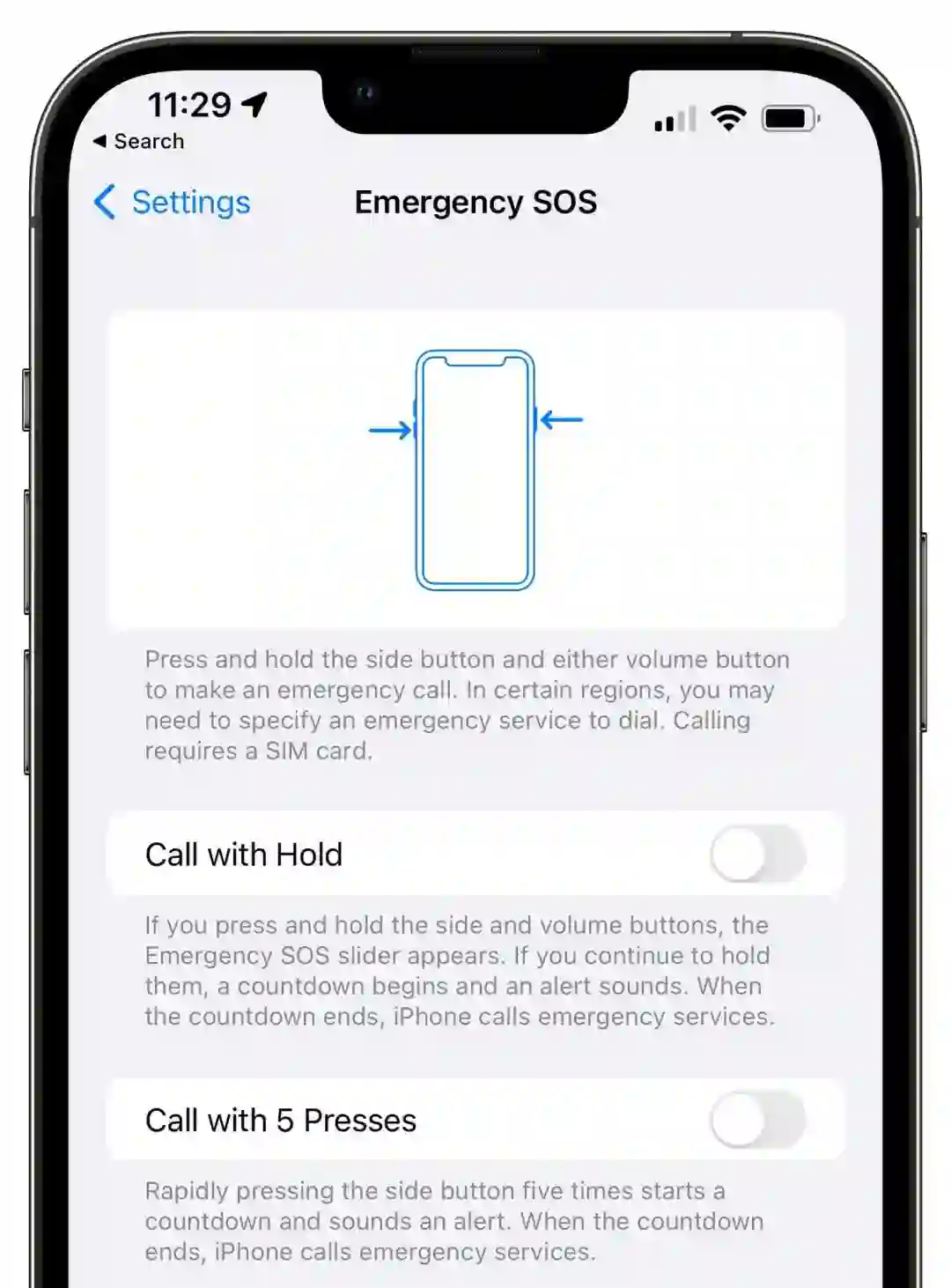 iOS 15.2中更新了自动呼叫功能,该功能可以通过按一系列按钮来呼叫紧急服务。现在,您可以多次快速按侧键启动,或同时按住侧键和音量键。