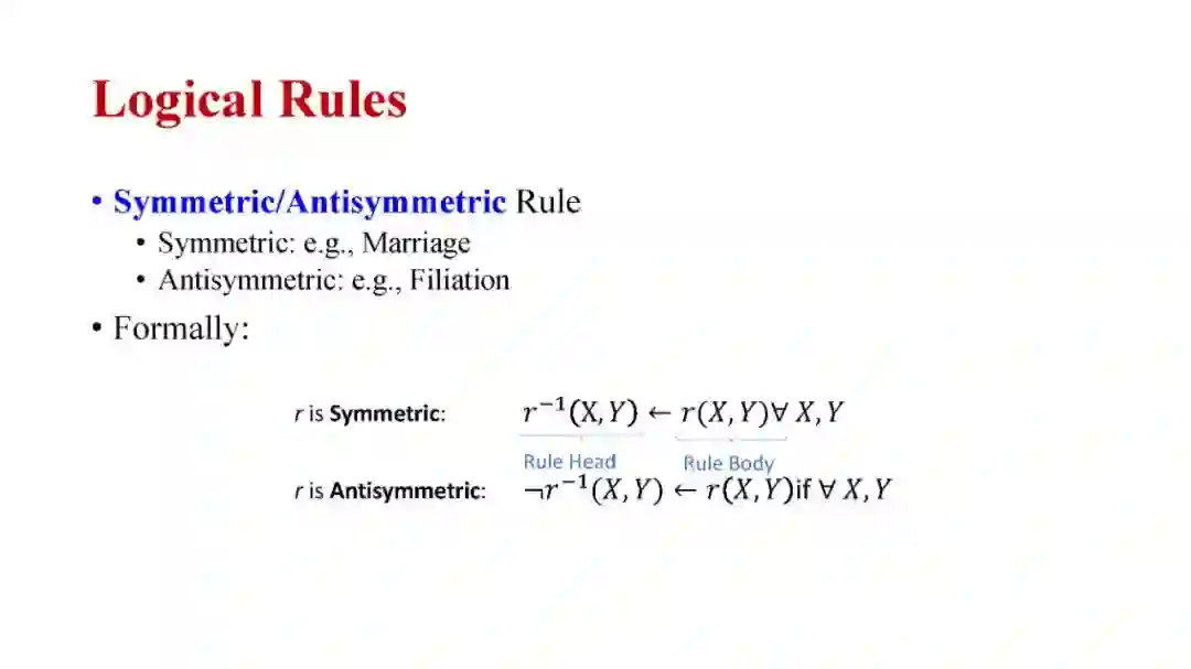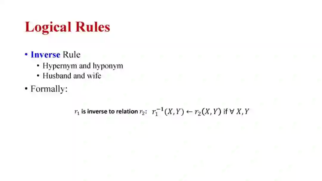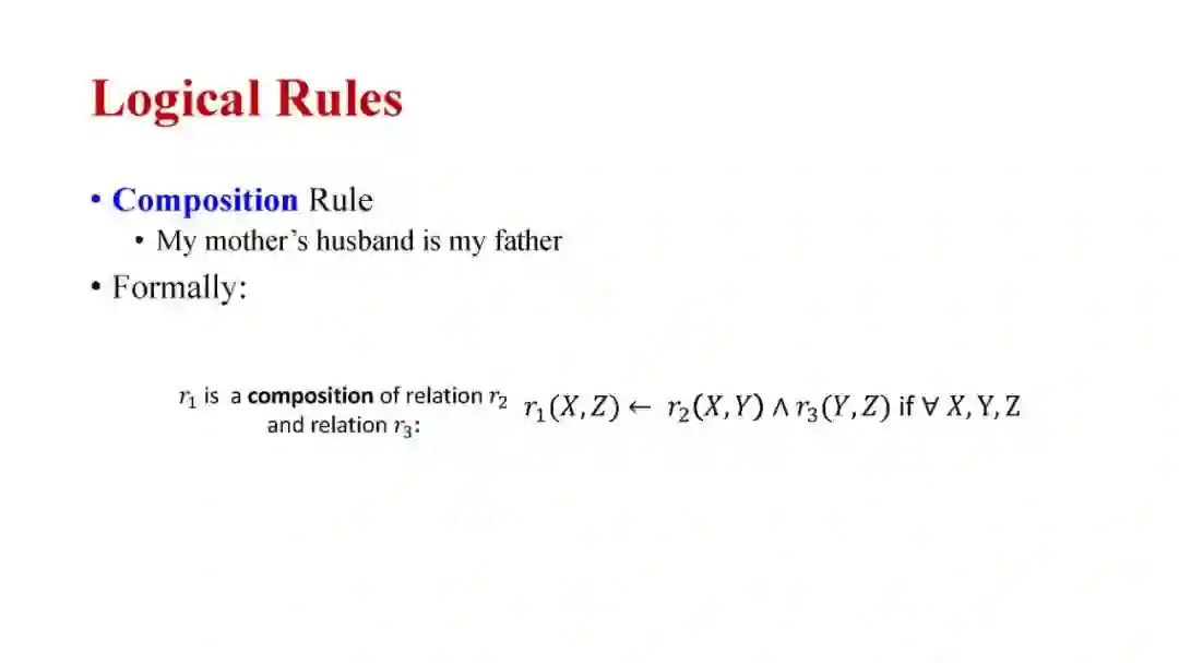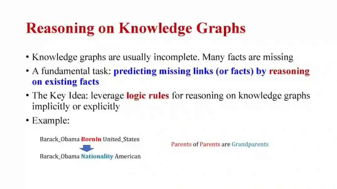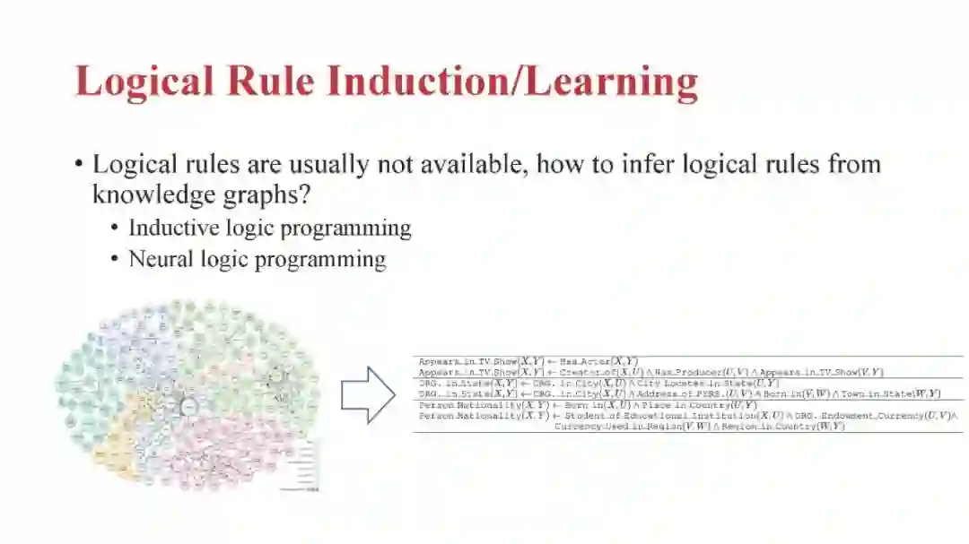 知识图谱推理是一个基础问题,在电子商务推荐、生物医学知识图谱药品再利用等领域有着重要的应用。在本教程中,我将全面介绍知识图谱推理的最新进展,包括:(1)知识图谱嵌入的方法(如TransE、TransR和RotatE);(2)传统的归纳逻辑规划方法和最新的神经逻辑规划方法;(3)结合神经和符号逻辑方法进行知识图谱推理的最新进展。