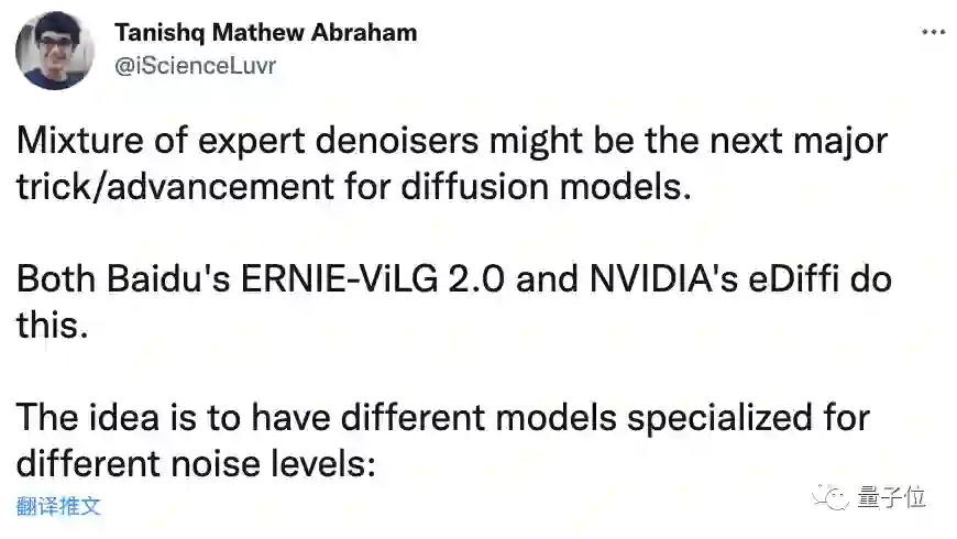 一位StabilityAI员工认为,这种方法可能是扩散模型的下一大突破/进步。因为不止英伟达的这个eDiffi,还有百度的文心ERNIE-ViLG 2.0也是这么做的。