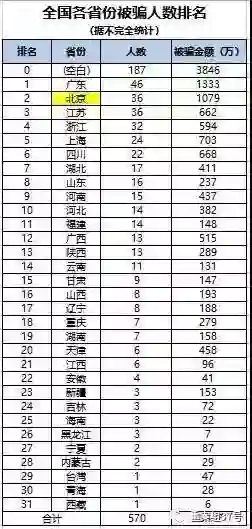 受害者们统计的全国各省份被骗的人数和金额。图片来源:新京报