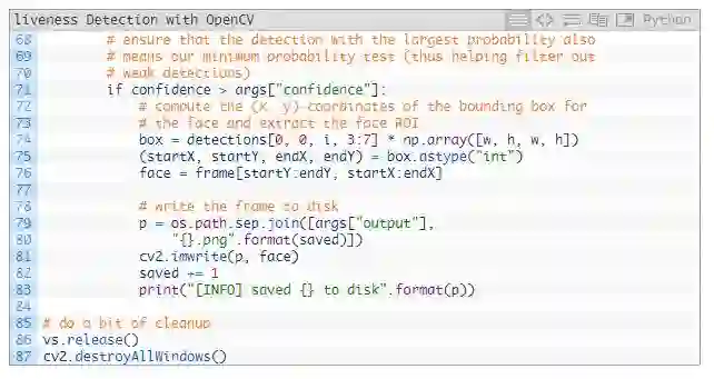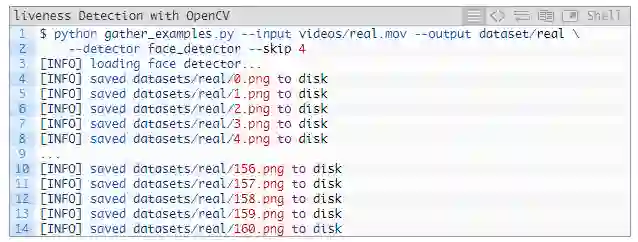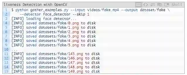 1. gather_examples.py:这个脚本从输入的视频文件中提取了面部 ROI,帮助我们创建了深度学习面部活体数据集;