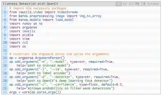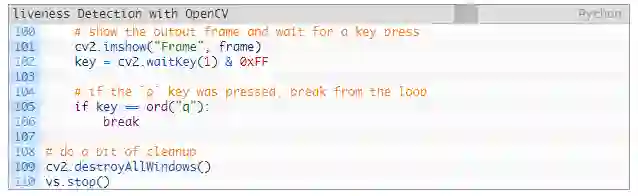 为了演示完整的活体检测流程,我们创建了一个 Python+OpenCV 的脚本,它可以加载我们的活体检测器,并且可以将它应用在实时的视频流上。
