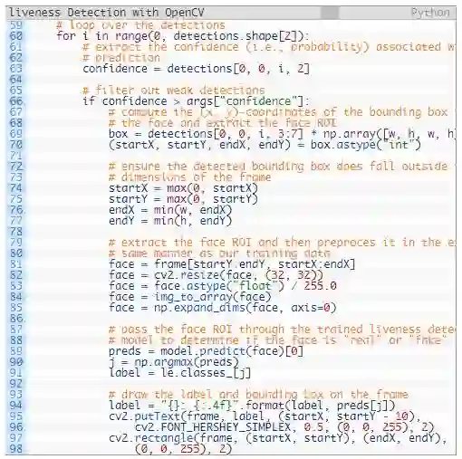 当检测出是真实面部时,直接在 91 行后面插入面部识别的代码。伪代码类似于:if label == "real": run_face_reconition();