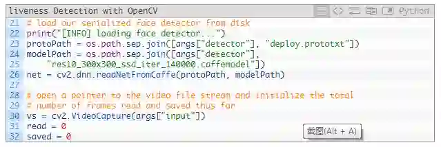 创建一个 Python+OpenCV 的脚本,可以通过该脚本使用我们训练好的活体检测器模型,并将其应用于实时视频。