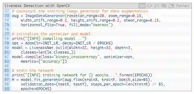 在 79~83 行中建立并编译了我们的 LivenessNet 模型。