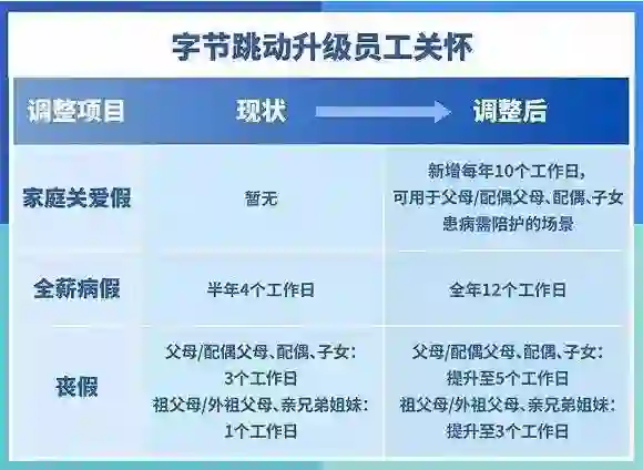 字节跳动宣布员工福利升级:新增 10天“家庭关爱假”