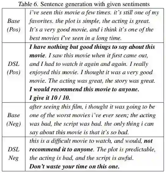 不过到了反向生成句子的时候,对偶监督学习模型展现出了强大的表现力,对简单短句的使用变少了,并且选用的单词、词语、句式表达出的情感更强烈、更具体。如下图