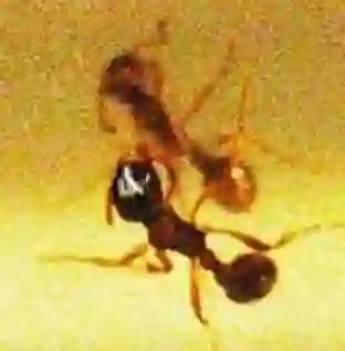 另一条路线就是镜子测试——如果动物镜子里的影像有不寻常的地方,它是否会触摸自己身体上对应的地方。惊人的是,有人报告某些蚂蚁能通过镜子测试,它们在镜子里看到身体上有一个蓝点的时候,会尝试挠那个地方来去掉蓝点(见下图,来自M.-C. Cammaerts and R. Cammaerts, J. of Science, v. 5, 2015, pp.521-532)。
