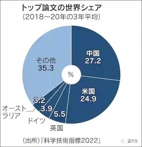 事实上,根据日本去年的调查,论文被引用次数排名前1%的“顶尖论文”中,中国已占据25%,紧逼美国27.2%的占比。