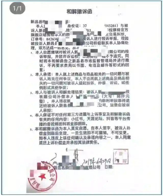 迫于工商监管的压力,周到最终向田小鲁支付了6000元以求和解。在收款之后,田小鲁随即撤销了她在浙江的工商投诉,并答应删除在小红书、天涯等平台发布的相关内容。