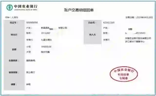 周到向田小鲁支付6000元赔偿的回单,图片来源:周到本人提供