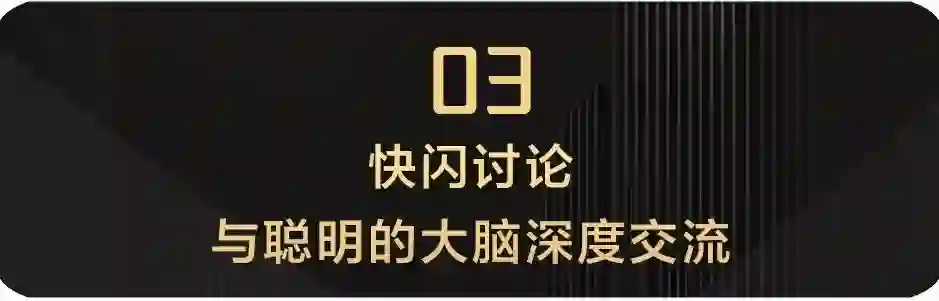 为了帮助你摆脱狭隘视野与思维定式,我们每月至少一次就时下热点话题,组织快闪讨论,让你与聪明的大脑深入讨论、思想碰撞,从更高的维度审视问题。