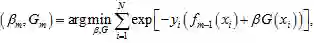 其中Gm为当前组合的弱分类器,fm-1为m-1步的组合结果,βm为当前弱分类器所对应的系数。在Adaboost中,系数βm的根据第m-1步组合后的模型误差计算所得。FOL对训练样本的分布进行更新的策略近似于AdaBoost的更新策略,虽然FOL和AdaBoost的作用方式不同,但最终都能有效的最小化经验风险。
