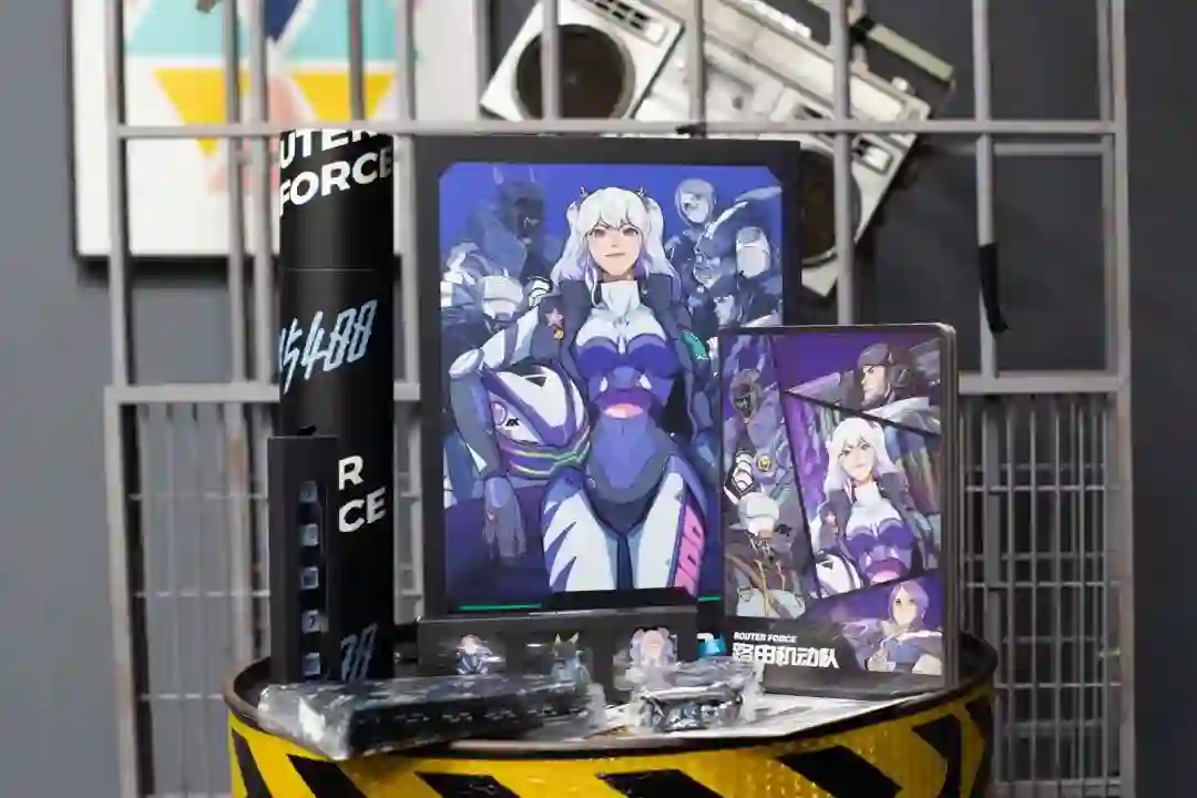 不同于往常,这次 Redmi 电竞路由器 AX5400 还专门费尽心思地打造了一套分量十足的礼盒套装,并且整体的设计风格契合了这次的“路由机动队”主题,给人一种格外浓郁的电竞氛围。