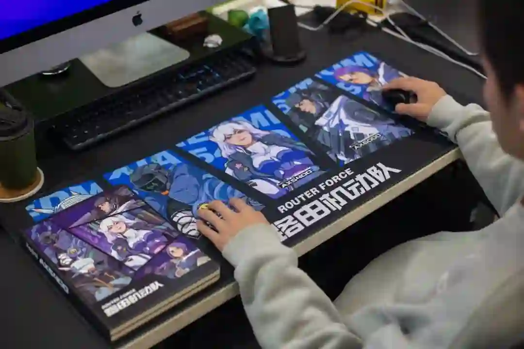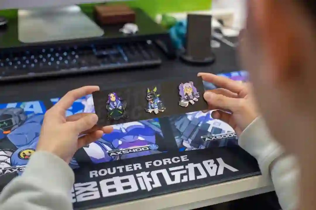 上述提及的周边产品不仅质量有所保证,其设计上的美感也获得了同事们的一致好评。其中,在这本相对厚实的笔记本中,还分别用对应的路由机动队去拟人化小米系的几款高端路由器产品。