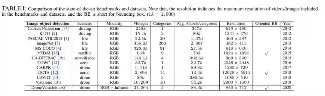 近日,天津大学的学者发布了论文Drone Based RGBT Vehicle Detection and Counting: A Challenge,公布了他们收集、标注的大型无人机航拍车辆数据集DroneVehicle,相信将会极大的方便该领域的研究开发者。