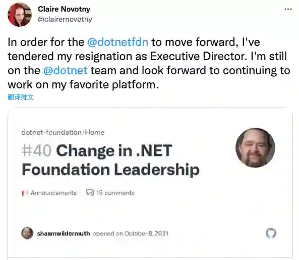 为了推动 @dotnetfdn 继续向前发展,我已辞去执行董事职务。我仍会留在 @dotnet 团队,也期待能继续为我最喜爱的平台贡献力量。